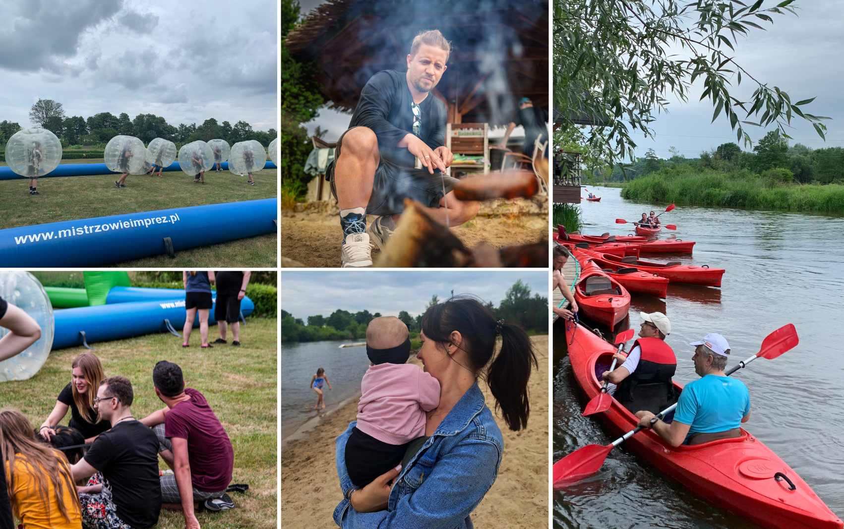 Po kajakach przyszedł czas na obiad z grilla, a potem na kolejną część integracji. 😉 Spływ Pilicą nie był jedyną atrakcją, przygotowaną dla nas na ten dzień. Mogliśmy też spróbować swoich sił w Bubble Football, czyli grze, w której każdy zawodnik ma na sobie nadmuchaną, dużą kulę. Ta część naszej integracji z pewnością na długo zostanie nam w pamięci. Podczas rozgrywki mogliśmy dać upust energii, sprawdzić siłę i celność, a do tego przez cały czas towarzyszyło nam mnóstwo śmiechu.